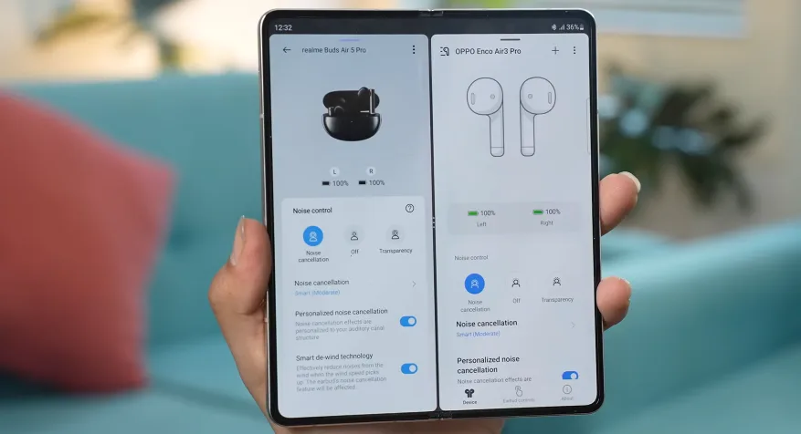 • Oppo: Focuses on “Adaptive ANC.” It’s excellent for low-frequency rumbles (like a bus engine) but lets in a tiny bit more ambient chatter than the Realme.